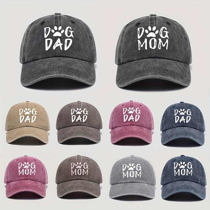 Unisex Vintage Washed Distressed Baseball Cap, Adjustable Dad Hat With "Dog Dad" & "Dog Mom" Print, Casual Sun Protection Sport Cap